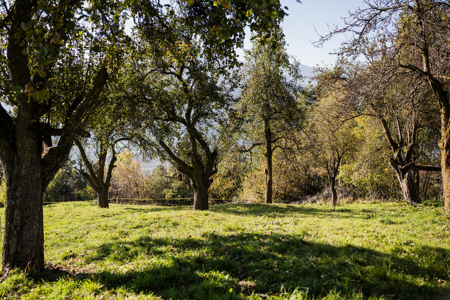 Im Sommer finden die Yogastunden oft im Freien statt – auf der Wiese vor dem Hof, mit dem Duft von frischem Heu in der Luft und dem Blick auf die Berge. Wenn es draußen kühler wird, lädt der gemütliche Yogaraum im Hof zu einer warmen, geborgenen Atmosphäre ein.
